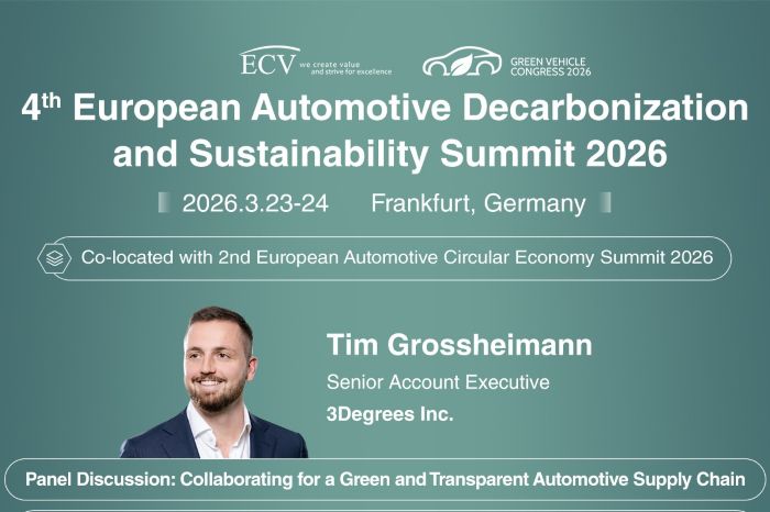 Following the successful European Decarbonization and Sustainability Summits in 2023, 2024 & 2025, ECV will upgrade the summit to the European Green Car Congress, including two parallel summits: the 2nd European Automotive Circular Economy Summit & the 4th European Automotive Decarbonization and Sustainability Summit, to fully respond to the opportunities and challenges brought about by the green transport transformation.